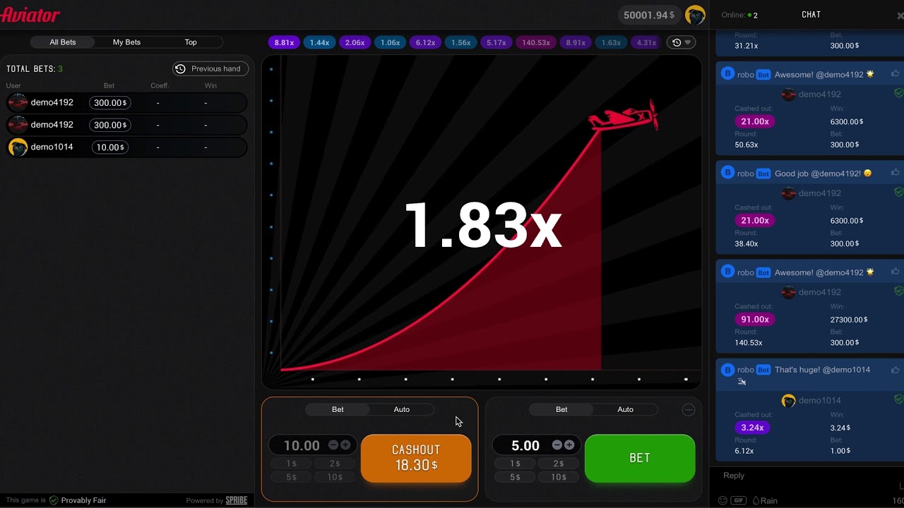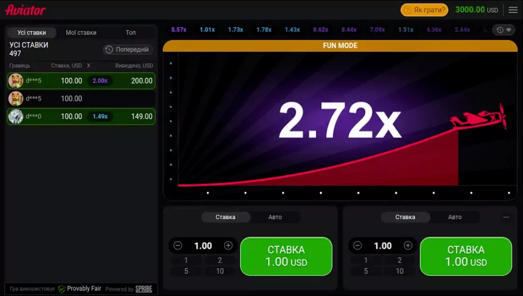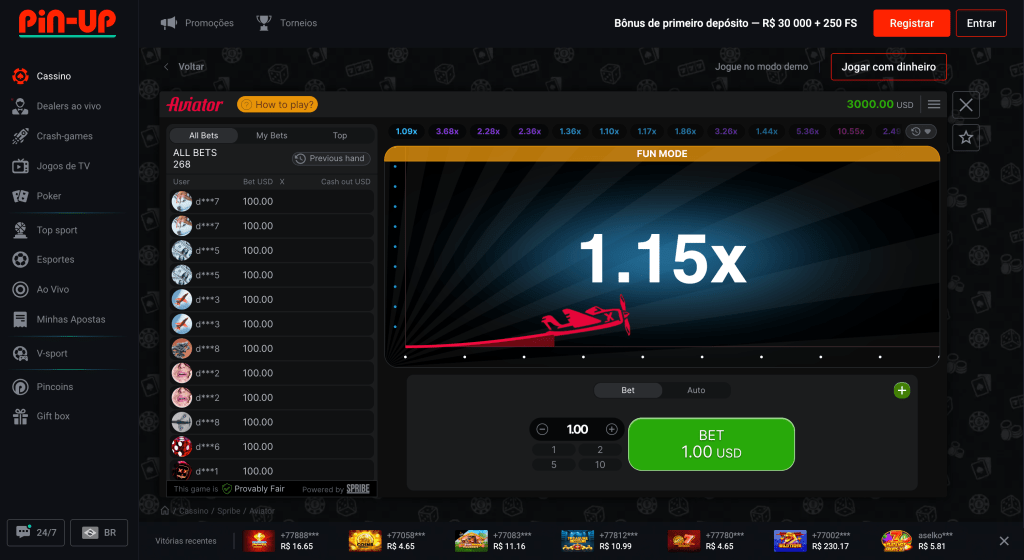 Le pari Aviator offre l’opportunité de gagner en pariant sur des cotes croissantes, potentiellement jusqu’�? x100. Avec une mise minimale de $1, vous pouvez gagner instantanément $1 000. La plateforme de jeu Spribe’s Aviator fonctionne sur un système d’équité prouvée, ce qui constitue la seule garantie d’impartialité digne de confiance dans ce secteur.